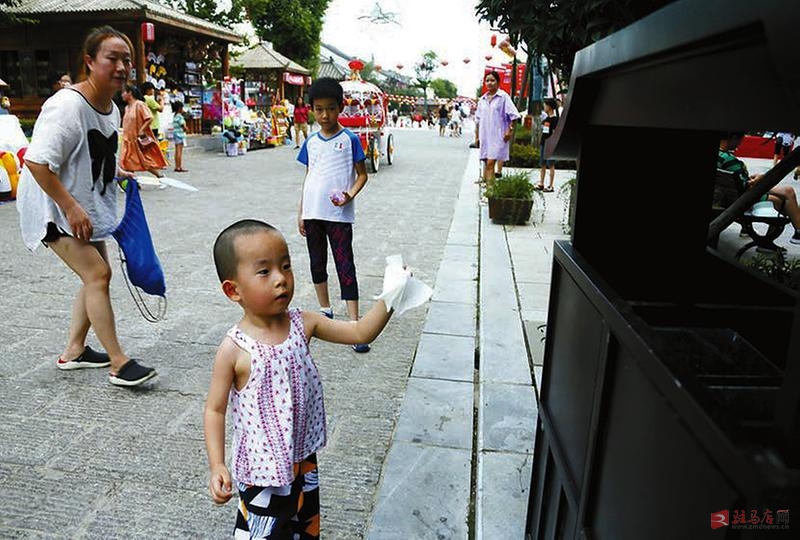 文明旅游从娃娃抓起。8月18日,我市一景区内一名小朋友在妈妈的引导下,把垃圾丢进垃圾箱。倡导文明旅游,提升旅游素质,请广大市民,尤其是党员干部和公职人员,带头遵守文明旅游的相关规定,带头监督和纠正各类不文明行为,提升市民文明旅游素质,着力塑造城市文明新形象,携手共建美丽文明驻马店。