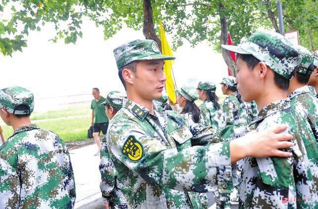开营仪式结束后,各连队带领学生到指定场地进行军事训练。