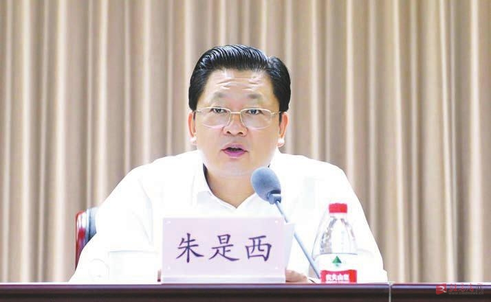 市委副书记、市长朱是西介绍第二十三届中国农产品加工业投资贸易洽谈会筹备工作情况。