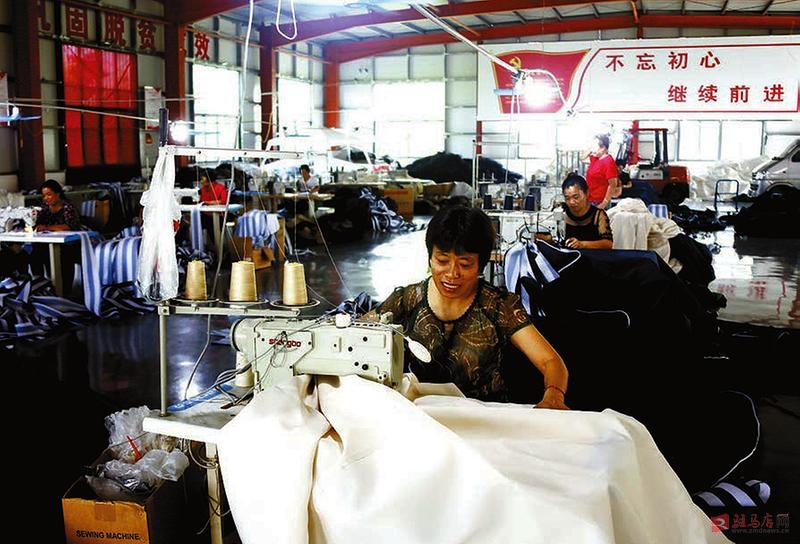 该企业主要生产帐篷,产品销往南美、欧盟等地,年产值150万元,带动贫困户10余户就业。记者 李旻 摄