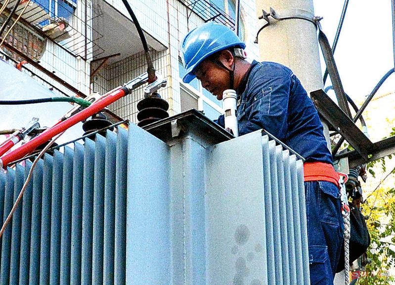 受高温天气强力拉动,市中心城区用电需求激增,辖区用电负荷不断突破新高。近日,驻马店供电公司输配电运检中心配电运检班对10千伏龙供3号线交通路13公变实施抢修作业,及时更换因持续高温烧焦的变压器低压桩头密封垫,确保用电高峰期间电网安全稳定运行。