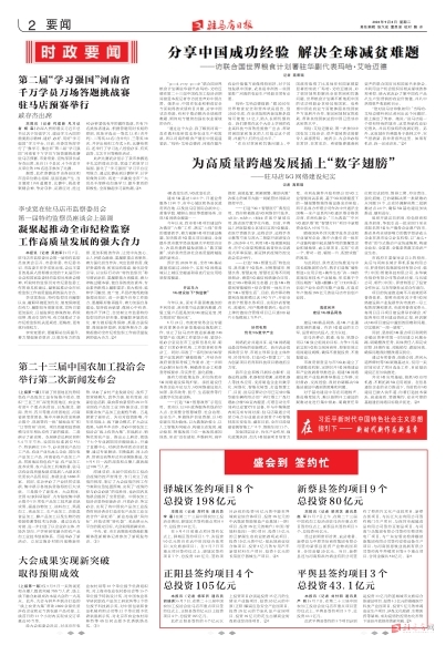 驿城区签约项目8个 总投资198亿元