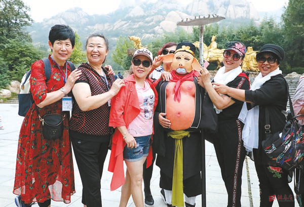 图②游客在嵖岈山与“猪八戒”开心合影。