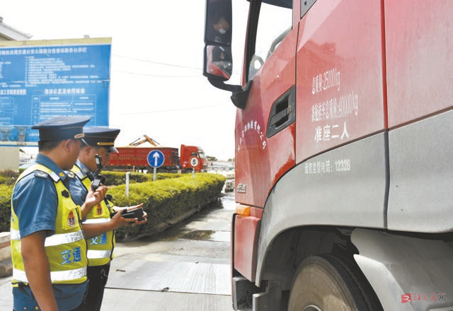 正阳县大罗超限站交通执法人员对过往车辆进行检查。实现“百吨王”清零 道路交通更畅通