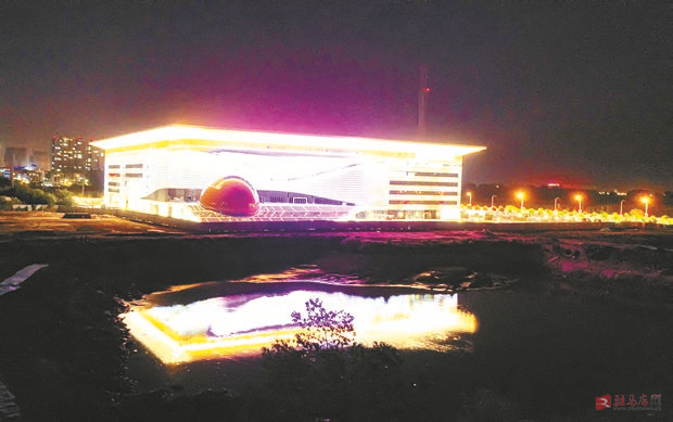 新落成的驻马店市青少年宫科技馆在夜色中光彩绽放。