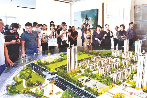 市民仔细品鉴楼盘项目规划沙盘。 王玉民 摄