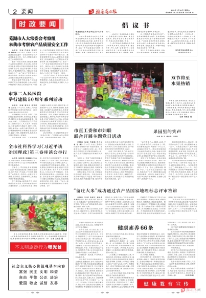 芜湖市人大常委会考察组来我市考察农产品质量安全工作