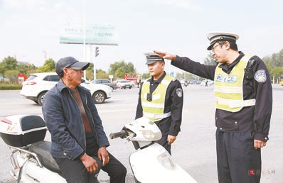 交巡警及时纠正不文明行驶行为。 记者 代廷伟 摄