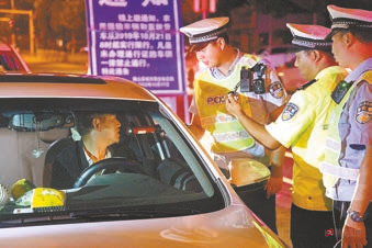 确山县公安局交警大队开展夜查酒驾行动。 通讯员 马红宇 摄