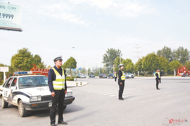 皇家驿站景区附近,交巡警全力以赴保畅通。 记者 代廷伟 摄