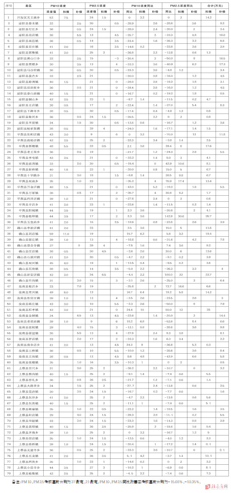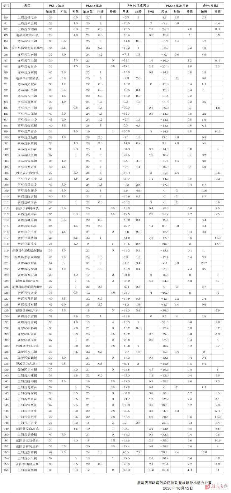 2020年8月乡镇环境空气质量生态补偿金支偿得补情况表