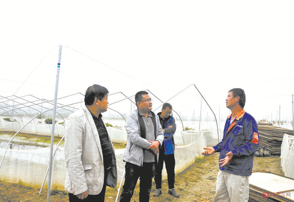 10月16日,新蔡县龙口镇驻村第一书记赵俊豪(左二)在该村利海生态养殖示范基地走访。
