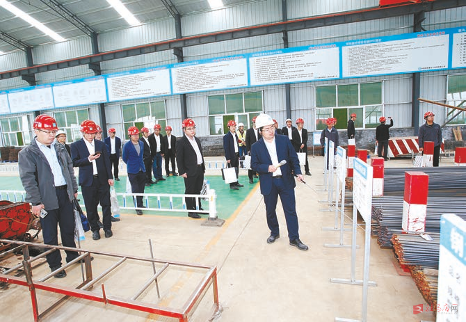 图为观摩人员听取工作人员对钢筋加工具体情况的介绍。