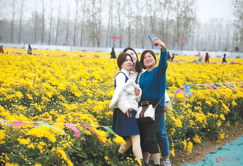 10月28日,游客在新蔡县关津乡第二届菊花展上拍照留念,共赏秋菊佳色。