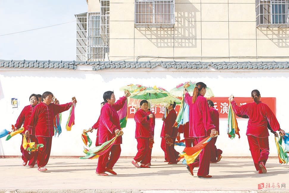 近日,汝南县古塔街道文艺轻骑兵演出队,在果园村乡村大舞台上演了花鼓《丰收中国》。图为演出现场。