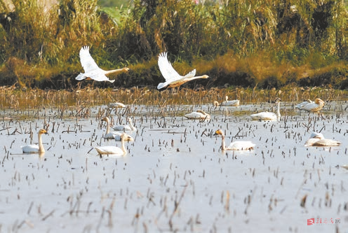 在江西省南昌市高新区鲤鱼洲管理处周边水域,越冬候鸟栖息于此(11月5日摄)。近日,大批越冬候鸟飞抵江西鄱阳湖湿地地区。位于江西省北部、长江中下游南岸的鄱阳湖是我国最大淡水湖和重要的鸟类保护区。每年秋冬季节,这里会成为候鸟迁徙路线上的越冬地和停歇地。 新华社发
