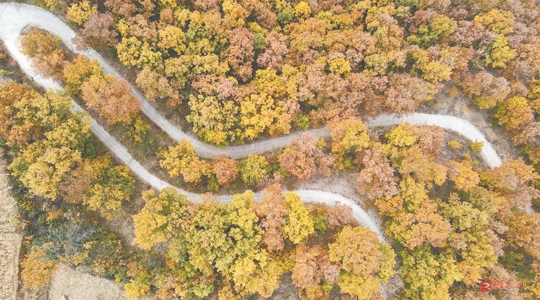 这是11月5日在河北省邢台市信都区浆水镇前禅房村拍摄的太行山秋景(无人机照片)。河北省邢台市信都区浆水镇前禅房村位于太行山东麓。深秋时节,树叶五彩缤纷,梯田层层叠叠,山路弯弯曲曲,太行山区宛然成了一幅色彩斑斓的画卷。 新华社发