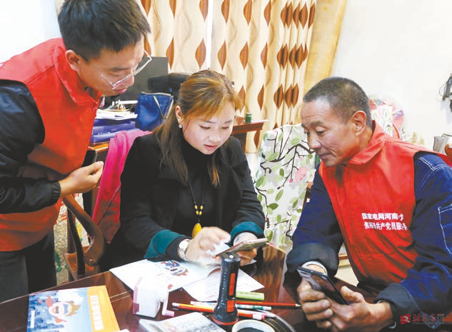 日前,泌阳县供电公司开展“决胜脱贫攻坚·情系美好生活”社会责任周主题活动,组织焦裕禄共产党员服务队队员走进文庄村开展“三电三进”主题宣传活动,向村民宣传电能替代和安全用电常识、推广“网上国网”APP,走进农户家中进行用电安全隐患排查,帮助检修家用电器线路,把优质服务送到村民身边。