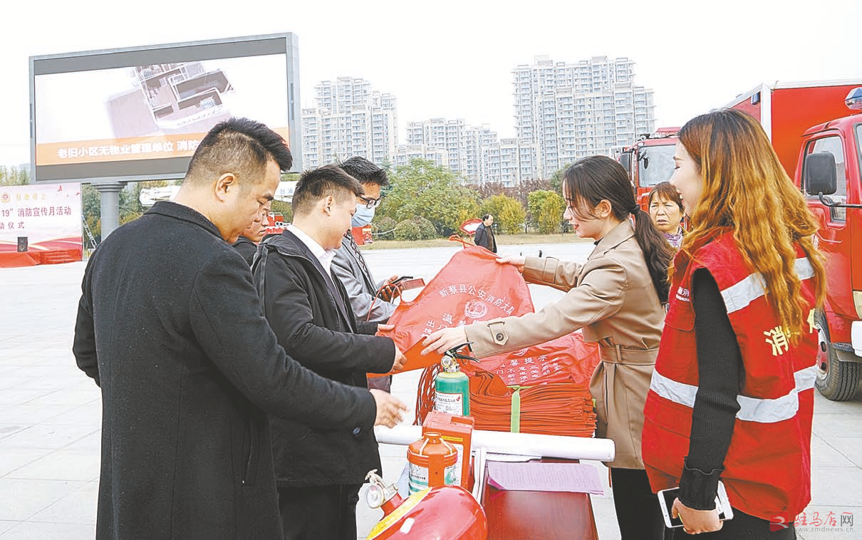 11月9日,新蔡县举行了以“关注消防、生命至上”为主题的消防宣传活动,并向群众发放印有消防知识的物品。