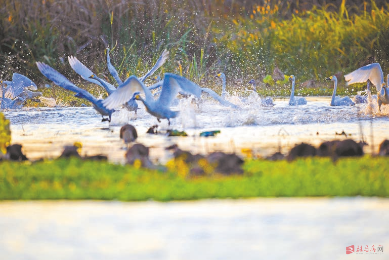 立冬刚过,汝南县宿鸭湖湿地迎来了国家二级保护鸟类——白天鹅。