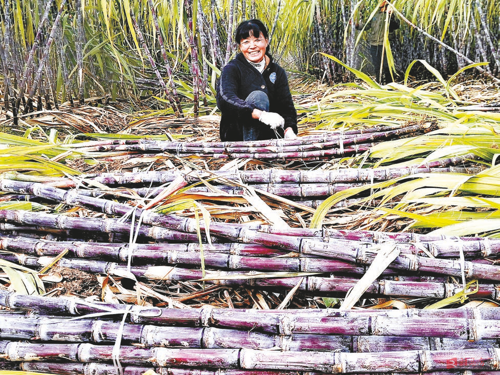 11月10日,在正阳县傅寨乡傅寨村的田野里,村民樊美玲正在收获甘蔗。她看着一棵棵甘蔗长得粗壮、色泽黑亮,脸上露出了丰收的喜悦。 记者 李玉荣 摄