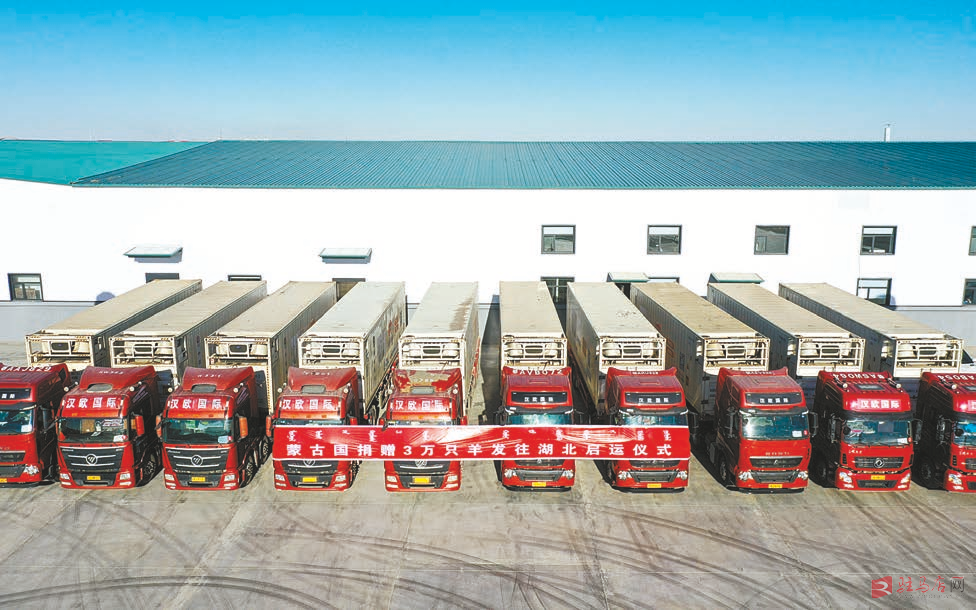 11月12日上午,首批加工完毕的1.2万只蒙古国捐赠羊完成装车,随即从内蒙古自治区二连浩特市启程,前往湖北省武汉市。