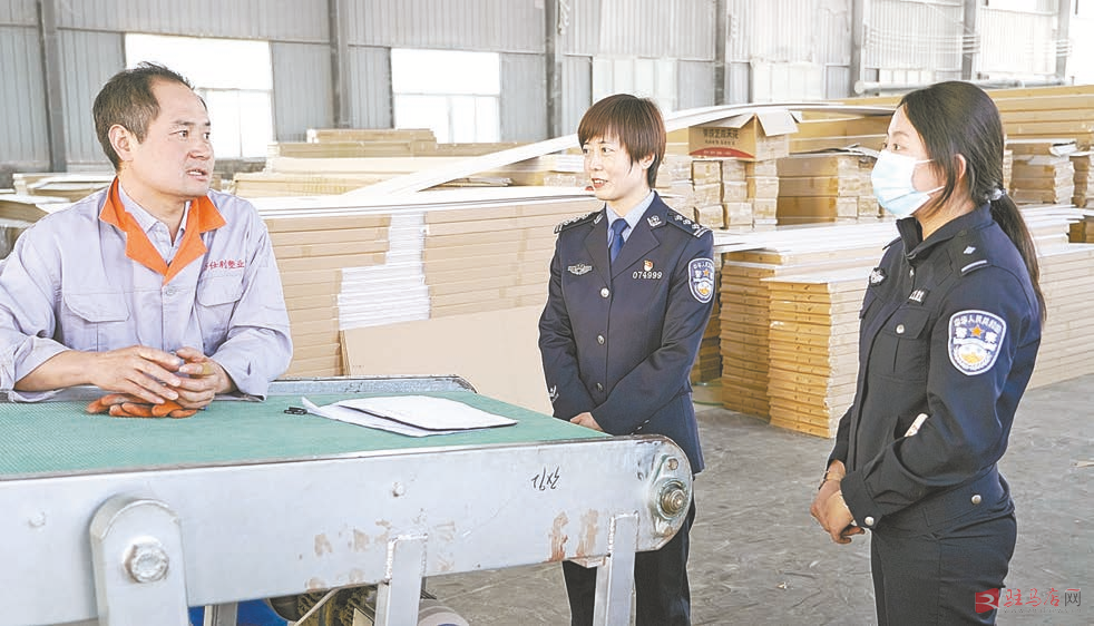 图为11月18日,上蔡县公安局民警在该县工业园区内的一家企业了解企业需求。连日来,该局扎实开展走访调研工业园区企业活动,通过了解企业生产建设状况,倾听、寻求企业对公安机关所盼、所需,研究落实针对性服务举措。