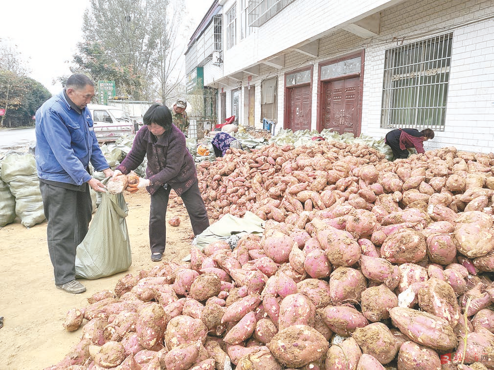 近日,记者在确山县石滚河镇石滚河村看到,当地村民正把丰收后的红薯装袋打包发往全国各地。近年来,该镇不断壮大特色农业种植规模,促进农民增收。