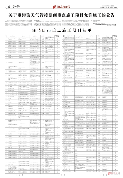 关于重污染天气管控期间重点施工项目允许施工的公告