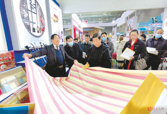 现场展示传统老粗布文创商品。