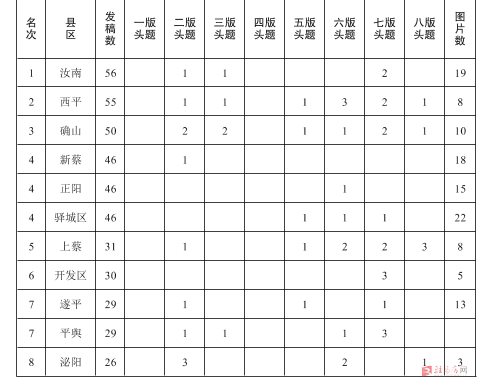 《驻马店日报》2020年11月份发稿统计