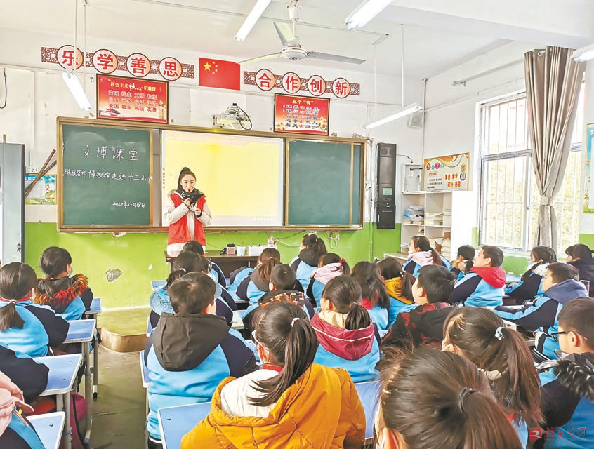 为发挥博物馆服务素质教育的作用,进一步加强馆校衔接,共建“第二课堂”,近日,驻马店市博物馆工作人员到驻马店市第十二小学,举办文博知识讲座。