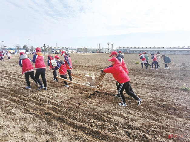 “人拉犁”农耕体验活动,让学生们对传统农业生产有了深刻认识。