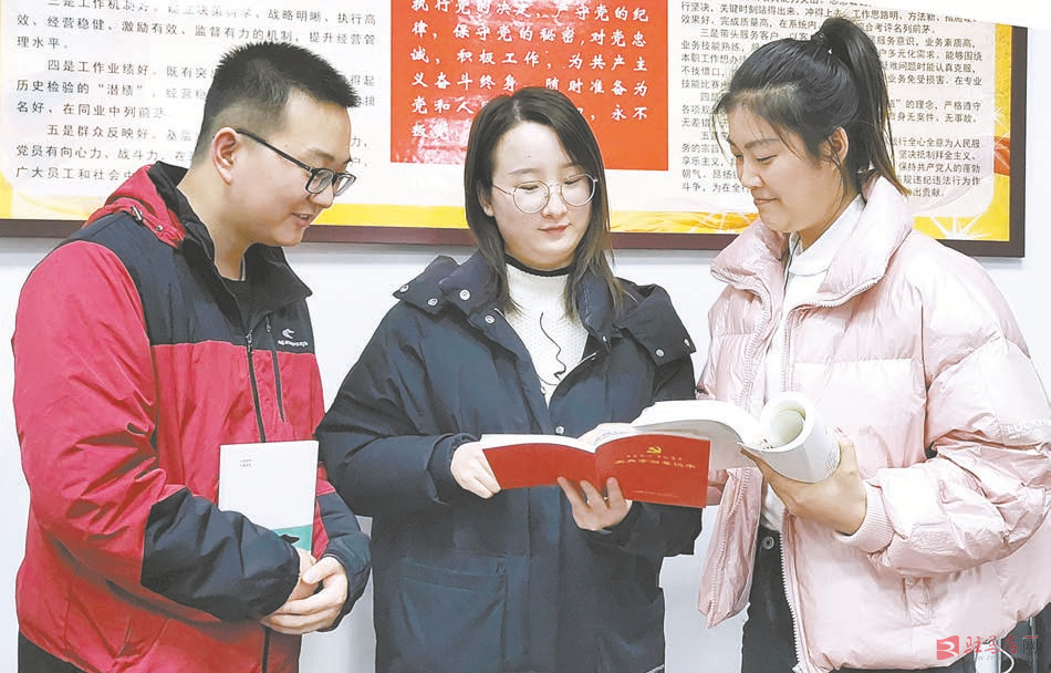 为推动青年员工深入学习习近平新时代中国特色社会主义思想,近日,农行驻马店分行在全行成立了习近平新时代中国特色社会主义思想青年学习小组,进一步强化青年员工政治理论学习。图为该行青年员工在交流学习。