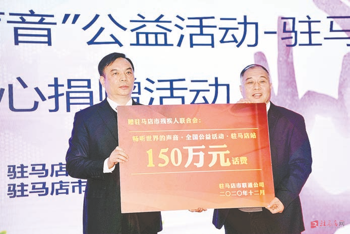 赠人玫瑰、手有余香,贡献爱心、与爱同行。捐赠仪式上,驻马店联通公司主要负责人向驻马店市残疾人联合会捐赠价值150万元的话费,用于实现听障人士接打电话的愿望。市残联主要负责人代表市残疾人接受了捐赠,并向驻马店联通公司回赠了“科技助残 让爱发生”的荣誉牌匾,市政府有关负责人向各县区残联授捐赠牌。随后,驻马店联通公司技术人员进行了腾讯王卡接打电话现场演示。
