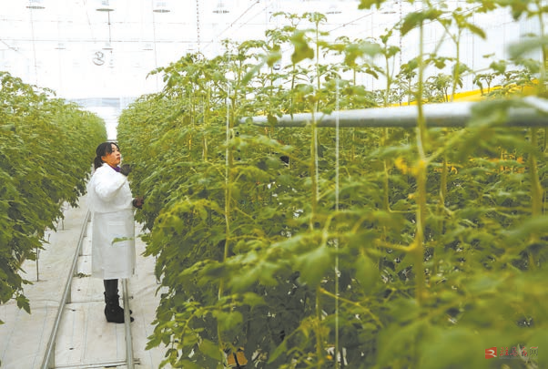 近日,在汝南县番顺西红柿产业园育苗中心,西红柿秧长势喜人,技术人员正忙着给秧上蘸花,到处一派繁忙的景象。据了解,汝南县番顺西红柿产业园目前已建设日光温室35万平方米,工厂化育苗中心及番茄大世界2万平方米,仓储、分拣车间等配套设施齐全,可为消费者提供新鲜、安全、美味、健康的高品质西红柿。