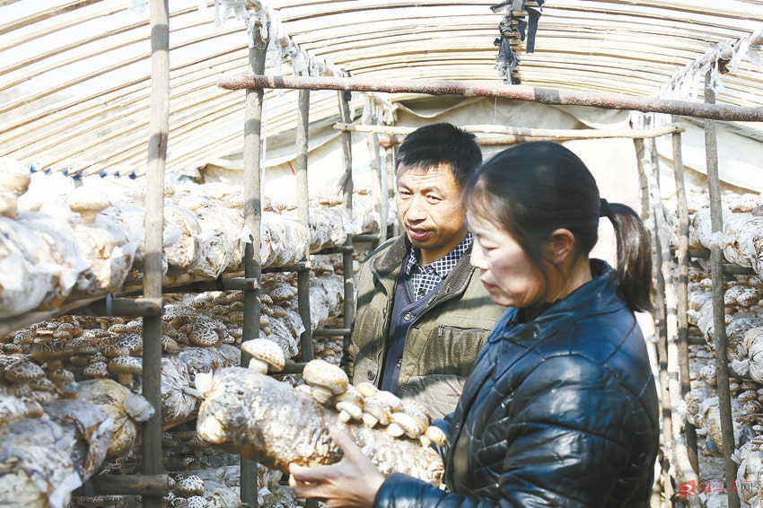 近日,驿城区蚁蜂镇南老庄村村民陈胜利夫妇在管理花菇。