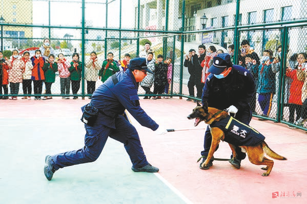1月10日是第一个中国人民警察节,正阳县部分学生以及家长代表到正阳县公安局出入境办证大厅、110指挥中心等部门,参加“警营开放日”活动。活动中,学生和家长观看了警犬表演、武器警械展示,并听取民警讲解相关警务知识。