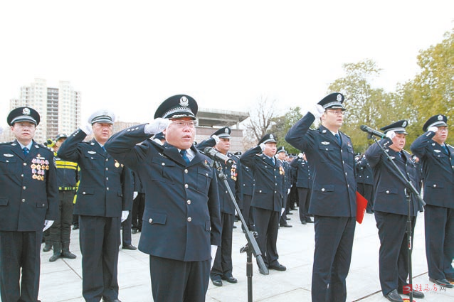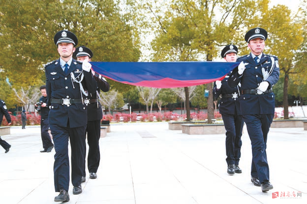 1月10日8时,市公安局在办公楼前广场隆重举行升国旗迎警旗仪式,庆祝首个中国人民警察节。在这个神圣时刻,参加活动的全体民警向着冉冉升起的国旗庄严敬礼。4名英姿飒爽的护旗手在嘹亮的警歌声中护卫警旗进入广场,在市公安局负责同志的带领下,全体民警重温入警誓词。受阅队伍跑步进场进行警务技战术表演。最后,市公安局负责同志饱含深情地说:“党中央从2021年起,将每年的1月10日设立为中国人民警察节,这是全国公安民警政治生活中的一件大事、喜事。从现在起,我们有了自己的节日。”他代表市公安局党委向全市广大公安民警、辅警致以节日的问候和美好的祝愿,并希望大家牢记初心使命,坚定从警信念,珍惜荣誉、砥砺奋进,为驻马店高质量跨越发展、打造全国一流地级市营造安全稳定的政治社会环境,为保障人民幸福、国家安全、社会稳定作出更大贡献。