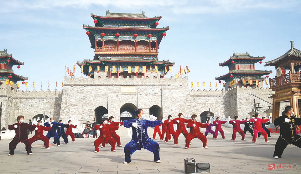 1月11日,天气晴好,天空湛蓝,一群太极爱好者在皇家驿站北区举行太极拳展演,弘扬太极文化、倡导健康生活,也为冬日的皇家驿站增添了活力。 记者 弓华静 摄