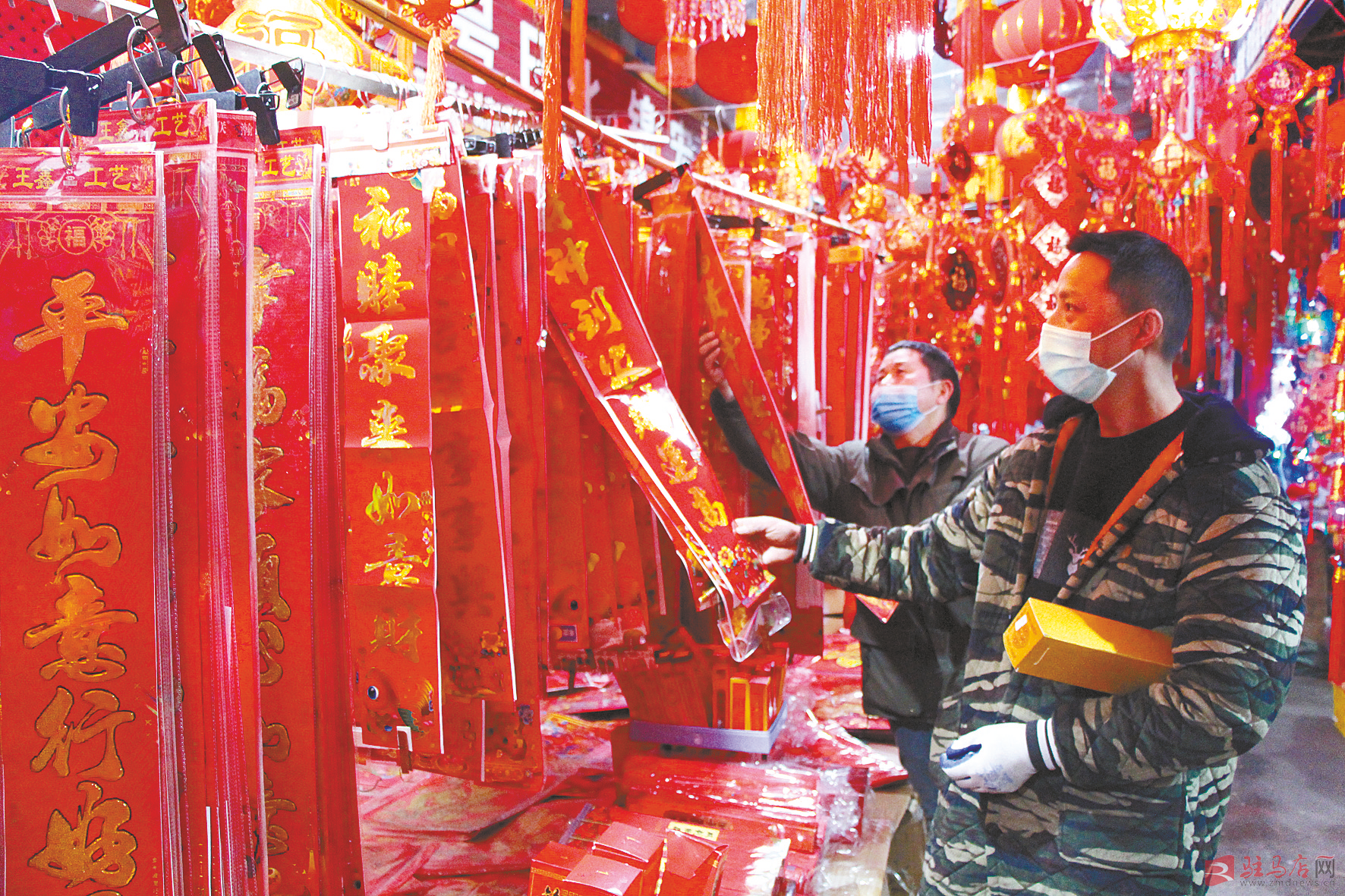 2月4日,在市区天龙市场市民在精心挑选春联,喜迎新春的到来。春节临近,我市各大年货市场进入购销旺季,对联、灯笼和生肖饰品等受到热捧。