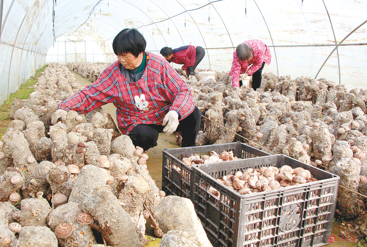 2月4日,遂平县槐树乡村民在大棚采摘花菇。为做好春节期间蔬菜供应保障,遂平县槐树乡采取“龙头企业+基地”的产业带动发展模式,建设了数百座瓜果、蔬菜温棚,推动了全乡各个行政村股份经济合作社的发展,壮大了村集体经济,带动了群众致富。