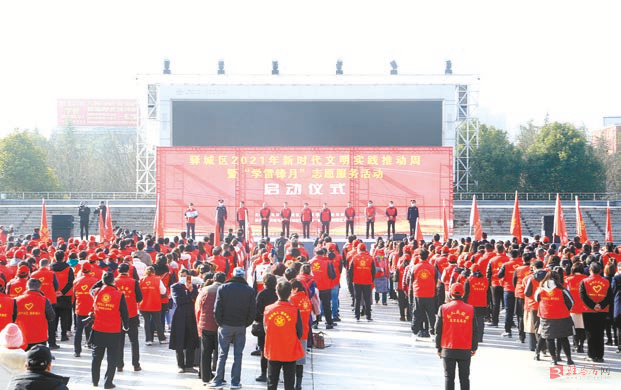 3月3日上午,首届“驿城区新时代文明实践推动周”暨“学雷锋月”志愿服务活动启动仪式在市世纪广场举行,驿城区委有关负责同志致辞并宣布活动启动。市委宣传部相关负责同志等出席仪式。仪式由驿城区委宣传部主要负责同志主持。