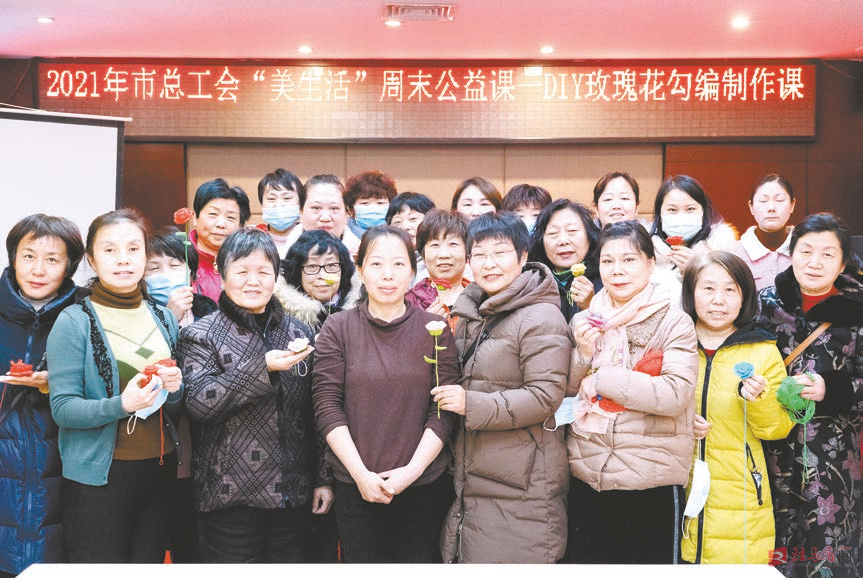 3月7日,在驻马店市工人文化宫3楼教室内,市总工会推出2021年“美生活”周末玫瑰花钩编制作公益课活动。此次活动为公益性质,市总工会承担师资、场地、材料等全部费用,职工抢票免费参与活动。