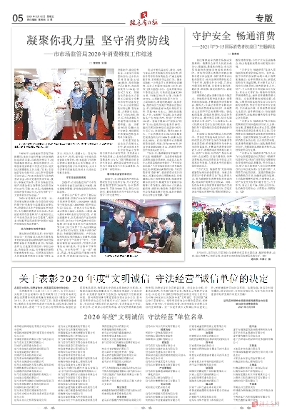 关于表彰2020年度“文明诚信 守法经营”诚信单位的决定