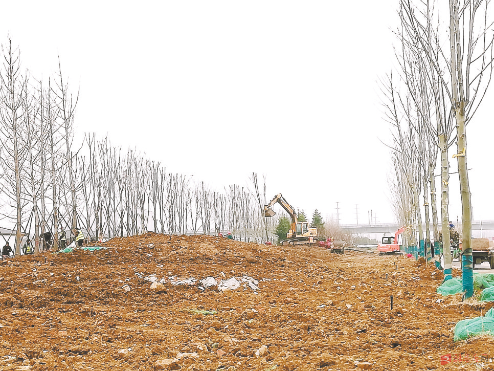 3月 15日,328国道驻马店段西延绿化工程正在加速推进。图为园林工人在栽种白蜡,现场一片热火朝天景象。