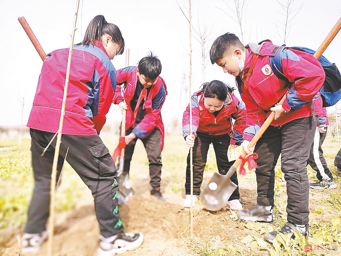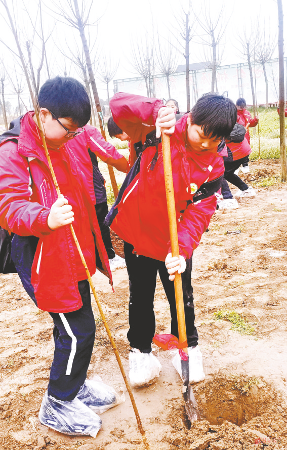 图② 3月12日,驻马店市第十小学开展“植绿护绿、劳动美”植树活动。 通讯员 耿可 摄
