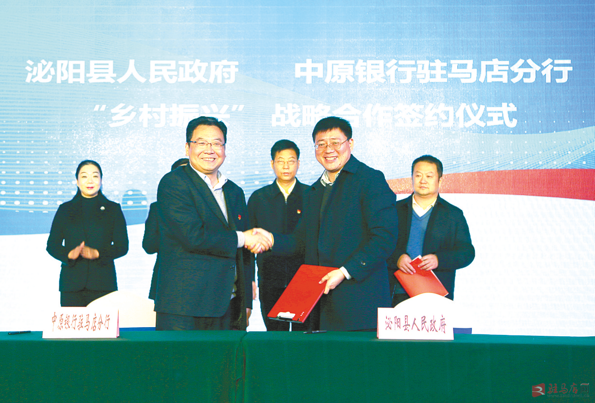 本报讯(通讯员 魏慧美)为积极响应国家乡村振兴战略部署,进一步加大地方经济建设金融服务支持力度,助推泌阳县乡村振兴战略实施,近日,中原银行驻马店分行与泌阳县人民政府签订了乡村振兴战略合作协议。泌阳县相关负责人、中原银行驻马店分行相关负责人,泌阳县财政局、发改委、金融局等36个县直单位负责人出席了签约仪式。