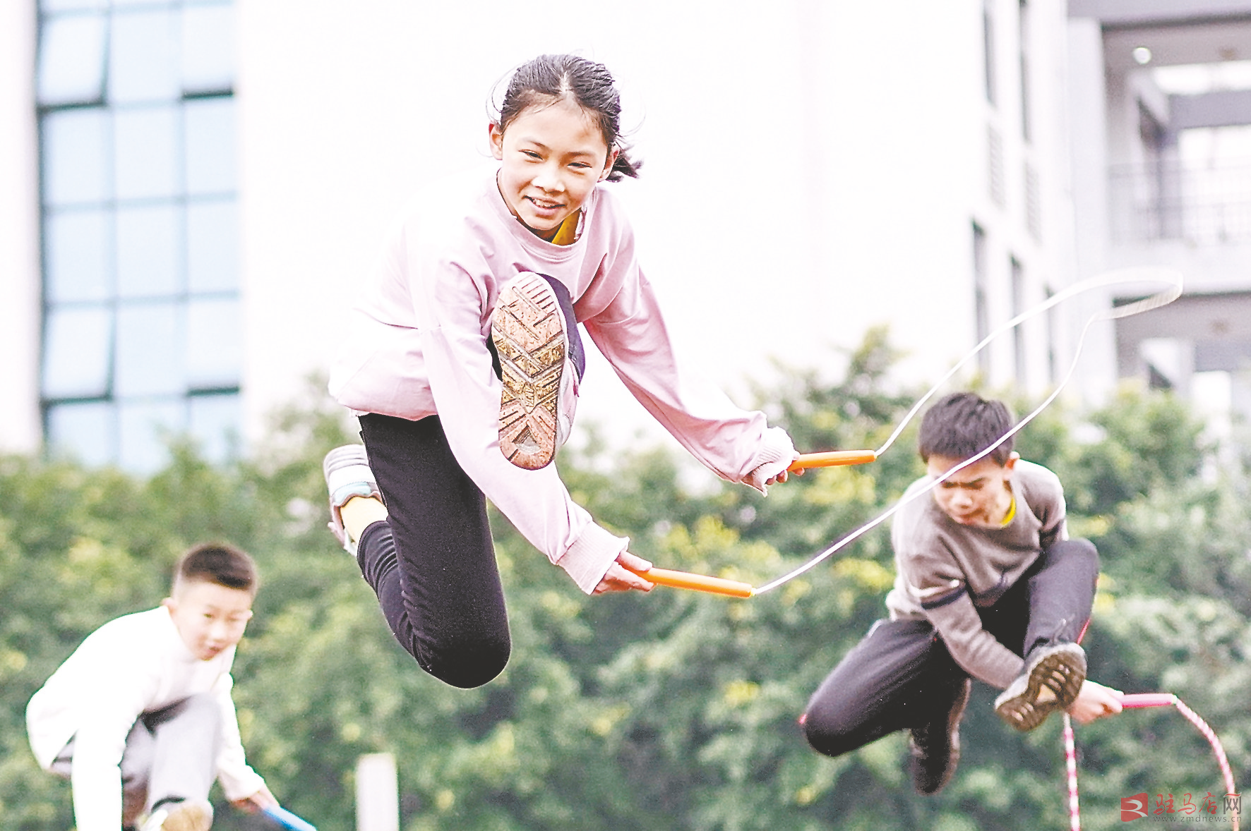 2020年12月9日,重庆市九龙坡区西彭镇第一小学校跳绳队队员在进行花样跳绳训练。该校从1999年开始引进跳绳,开展特色体育活动。 新华社记者 刘 潺 摄