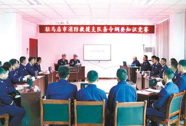 经过评委组综合评判,确山县、驿城区、开发区消防救援大队分获队列会操前三名;确山县、汝南县消防救援大队和应急通信与车辆勤务站获得知识竞赛前三名。